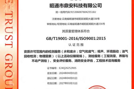2003年11月10日,昭通市鼎安科技有限公司成立,初始主要從事第三方安全工程技術(shù)服務(wù),經(jīng)多年運(yùn)營,發(fā)展為多專業(yè)綜合科技平臺(tái),為社會(huì)提供多種專業(yè)技術(shù)服務(wù)工作。 現(xiàn)公司注冊資金為1200萬元,公司法定代表人:毛衛(wèi)旭。公司主要業(yè)務(wù):安全評價(jià)、安全標(biāo)準(zhǔn)化評審、安全工程技術(shù)服務(wù);環(huán)境監(jiān)測、職業(yè)衛(wèi)生檢測、檢驗(yàn);法律訴訟及非訴訟服務(wù);司法鑒定、固定資產(chǎn)投資項(xiàng)目節(jié)能服務(wù);工程咨詢;工程測量測繪;安全教育培訓(xùn)等。是安全生產(chǎn)服務(wù)、安全教育培訓(xùn)機(jī)構(gòu),也是環(huán)境監(jiān)測和職業(yè)衛(wèi)生服務(wù)機(jī)構(gòu),同時(shí)也是綜合的檢測檢驗(yàn)、綜合科技平臺(tái)服務(wù)機(jī)構(gòu)。多年來為公、檢、法、司、軍、警、海關(guān)、仲裁、安監(jiān)、工礦商貿(mào)企業(yè)、社會(huì)團(tuán)體及個(gè)人提供多專業(yè)技術(shù)服務(wù)。